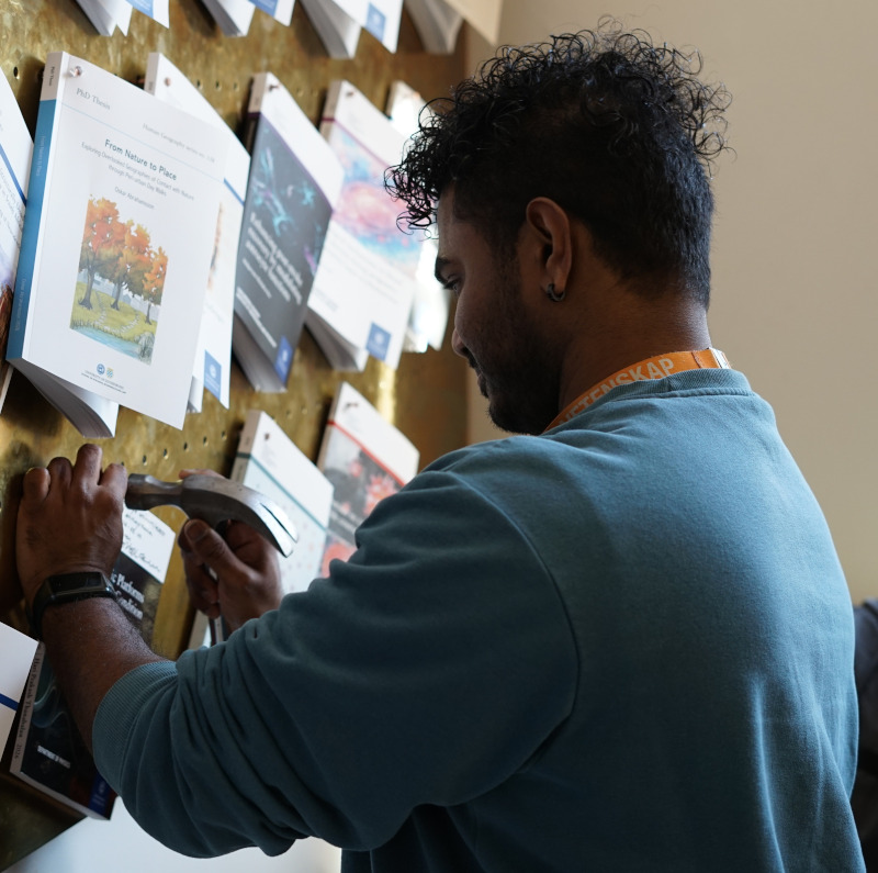 In Swedish academia, “nailing” (spikning) is the formal public announcement and publication of a doctoral thesis. It happens weeks before the defence so that the public has time to read the thesis in advance and prepare questions for the defence. In addition to the physical nailing, the thesis is also published electronically (e-spikning) via GUPEA.